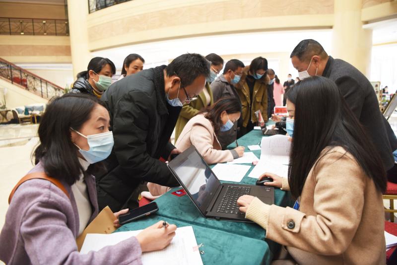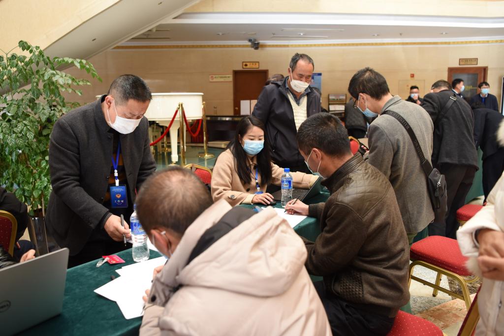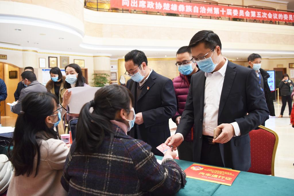 参加政协懂球帝彝族自治州第十届委员会第五次会议的政协委员到会议报到点报到。记者 夏天彧 摄