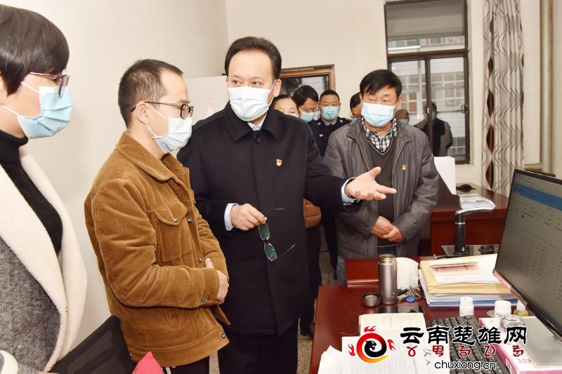 州委副书记、州长迟中华到州疫情防控指挥部检查常态化疫情防控工作。(本报记者王洪摄)