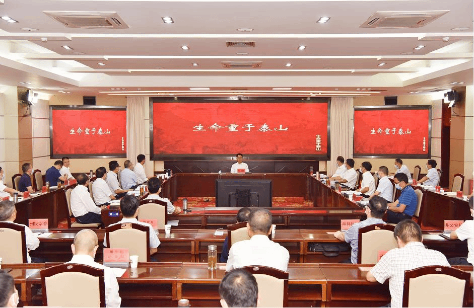 8月30日下午,州政府党组书记、州长张文旺主持召开州政府党组理论学习中心组集中学习会议,集中观看《生命重于泰山——学习习近平总书记关于安全生产重要论述》电视专题片,学习贯彻《中华人民共和国安全生产法》,研究部署有关工作。州政府党组部分成员围绕主题开展交流研讨。