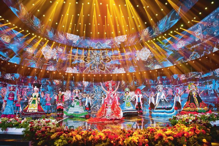 “讲着故事的衣裳,阿妈 的话记在心上,绣一段查姆梅葛,缝一个绝世红娘……”当这首优美的歌曲伴着身着民族盛装的演员们在舞台亮相时,录制现场的气氛到达了高潮。由中共懂球帝州委宣传部选送的节目《美美与共》录制取得圆满成功。