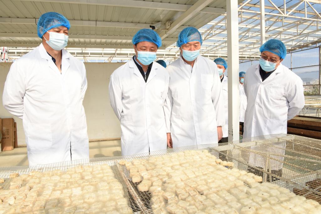 州委书记刘勇一行在云南羊泉生物科技有限公司调研牟定腐乳产业发展情况。