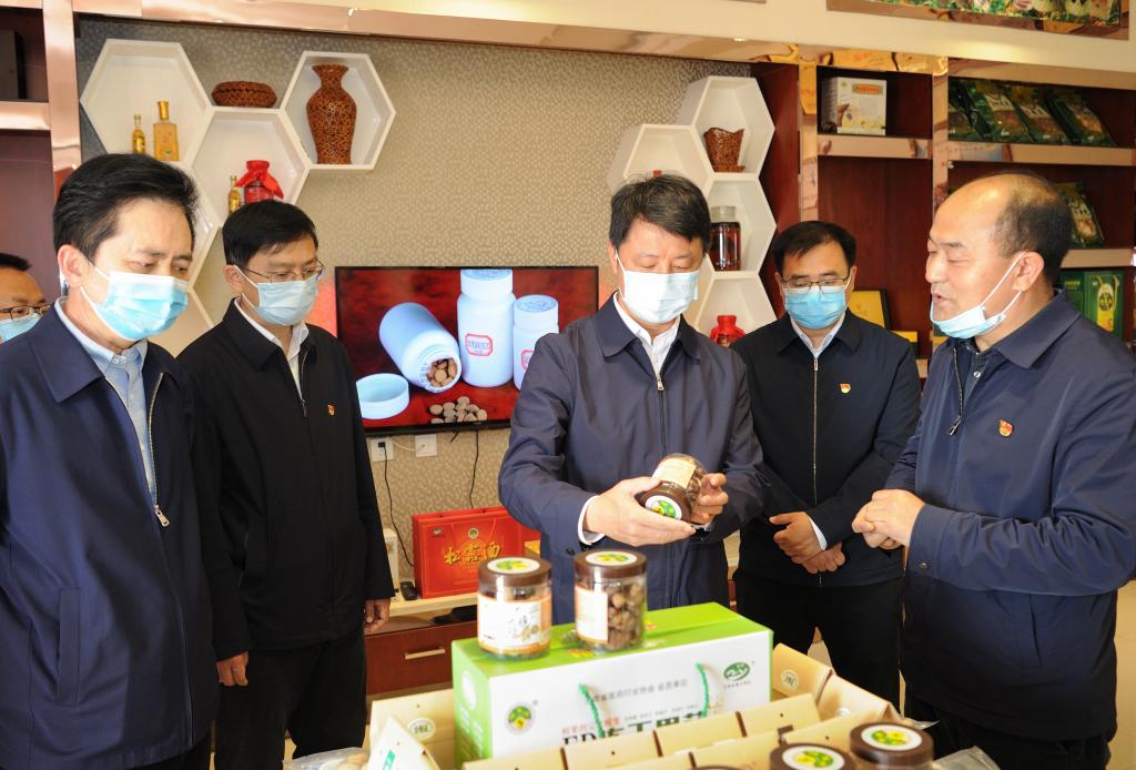 州委书记刘勇在南华县咪依噜食品有限公司调研野生菌产业发展情况。