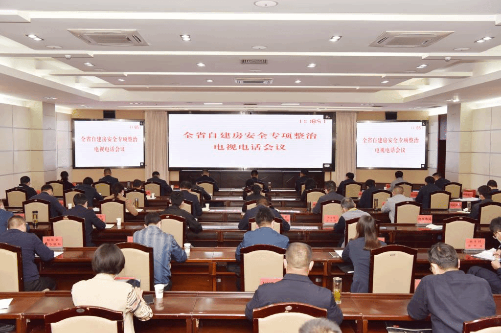 自建房安全专项整治电视电话会议现场。