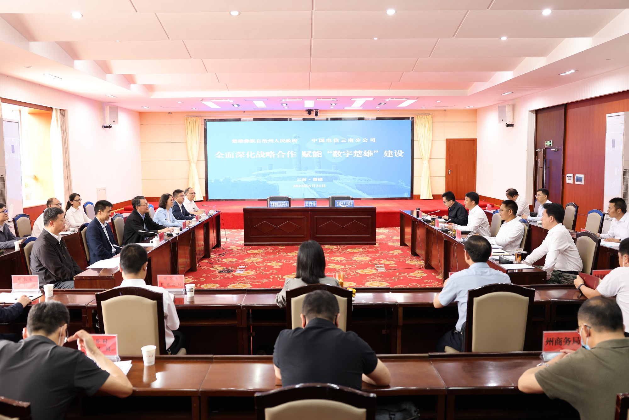 州政府与中国电信云南分公司战略合作座谈会现场。