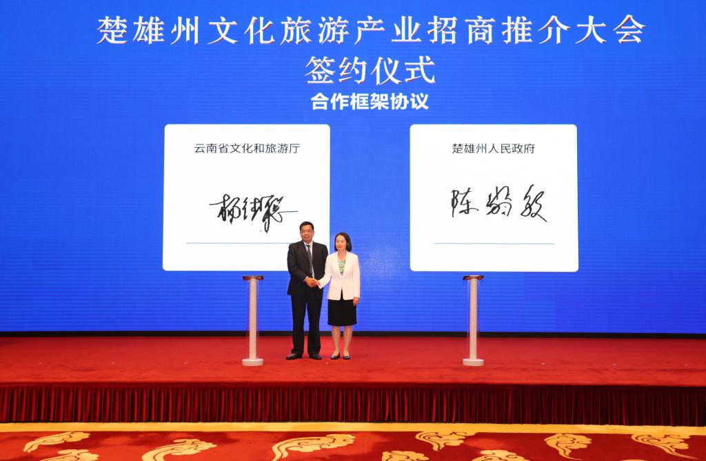 会上,与会人员观看了《大滇西旅游环线懂球帝“四大走廊”》宣传片,10县市政府主要领导作文化旅游项目招商推介,副州长陈翡敏与省文化和旅游厅副厅长杨德聪分别代表双方签订合作框架协议,州、县市政府与相关企业签订14个合作框架协议,总投资约130亿元。