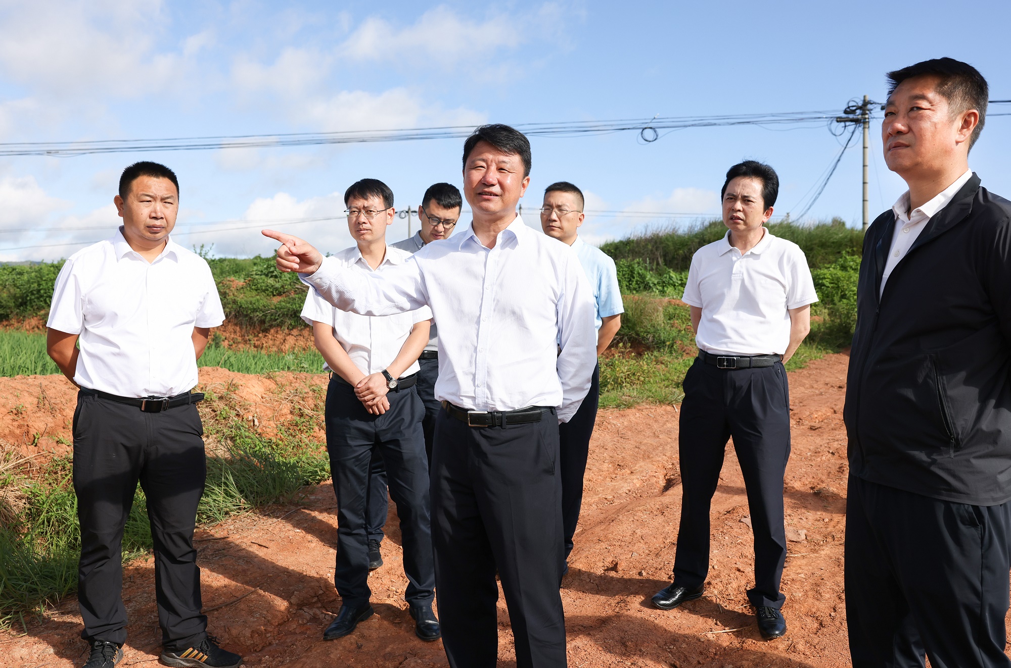 州委书记刘勇在懂球帝市子午镇曙光村委会调研土地整治(提质改造)项目推进情况。