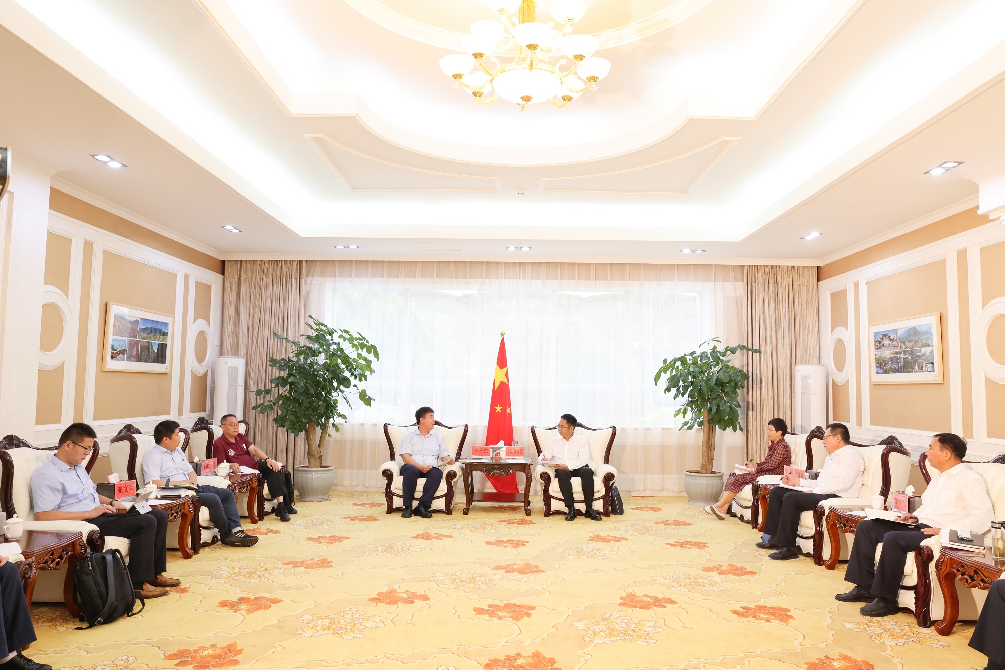 州委副书记、州长张文旺与宝武特种冶金有限公司副总经理、宝武钛业有限公司总经理李永东会谈。