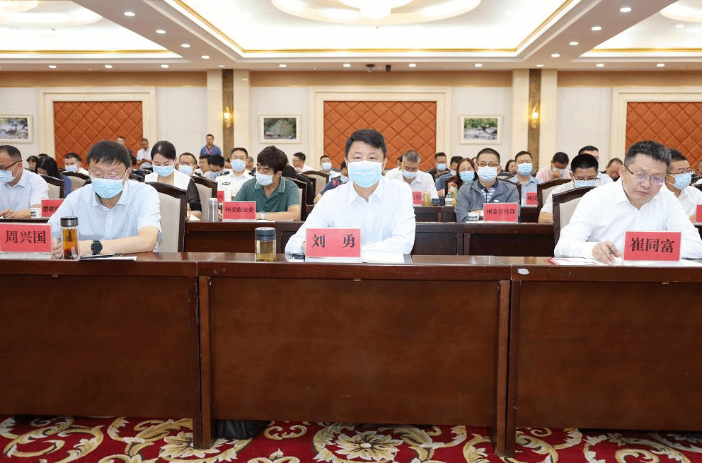 刘勇、崔同富、周兴国、赵晓明、李汶娟、杨佳贤、陆积锋、李长平、梁文林、李坚、王建雄、陈翡敏、李勇、李玉林、杨俐昆在州分会场聆听讲座。