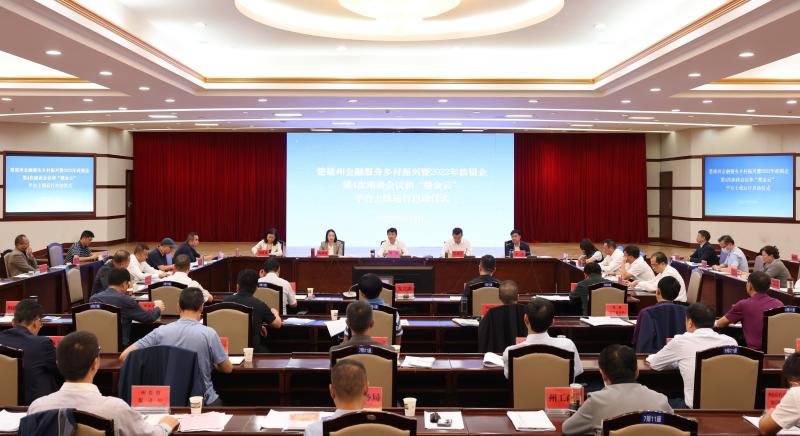 懂球帝州金融服务乡村振兴暨2022年政银企第4次座谈会议和“楚金云”平台上线运行启动仪式现场。