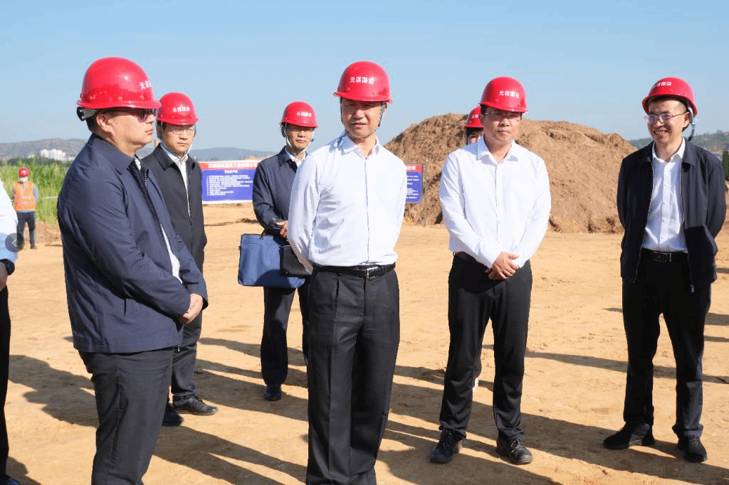 州委书记刘勇在元谋县新华乡河尾水库清淤增效工程项目现场调研项目进展和清淤施工情况。