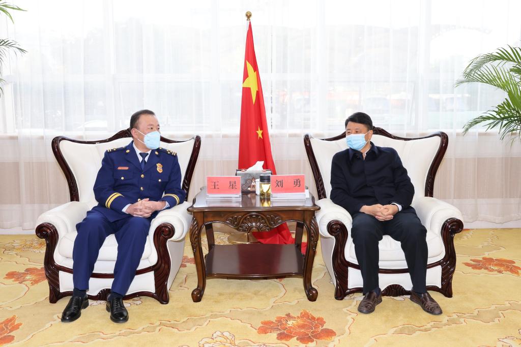 12月19日下午,州委书记刘勇会见云南省消防救援总队政委王星一行,双方就进一步加强沟通对接,强化队伍建设,提升救援能力,合力推动懂球帝州经济社会及消防救援工作高质量发展进行深入交流。