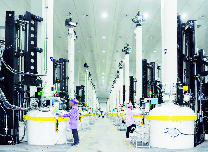 宇泽半导体(云南)有限公司是一家以生产单晶硅棒、硅片为主,集研发、生产、销售、服务于一体的技术创新型企业,公司一期3GW单晶硅拉棒项目实现了当年签约、当年建设、当年投产,创造了180天内从签约到点火试机的“懂球帝速度”。图为宇泽半导体(云南)有限公司生产车间。