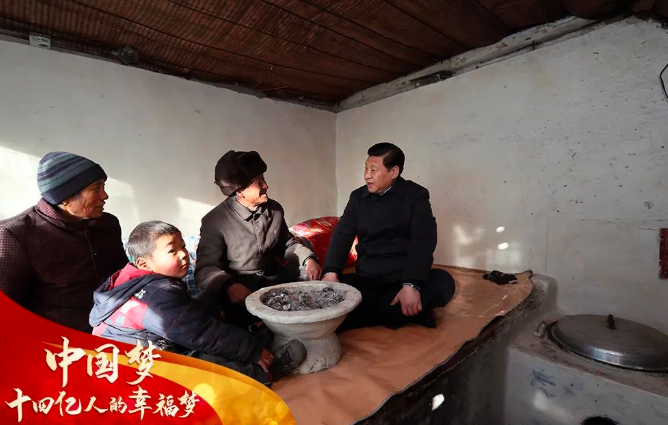 2012年12月底,刚任总书记一个多月,习近平冒严寒、踏冰雪来到河北阜平,先后走进骆驼湾村、顾家台村看真贫。一张广为人知的照片记录下温馨一幕:在骆驼湾村唐荣斌家的土炕上,总书记盘腿而坐,和唐荣斌老两口拉家常,详细询问生活情况,老两口4岁的孙子唐孝亿把两脚抵在火盆边。