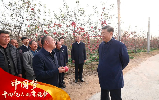 党的二十大闭幕后,总书记第一次外出考察来到延安,带领新一届领导集体赓续红色血脉、传承奋斗精神,坚定在新征程上交出新答卷的不渝信念——“两个一百年”奋斗目标的第一个百年目标已经实现,绝对贫困问题解决了,老乡们过上了好日子,但还要继续努力往前走,让生活越来越美好。