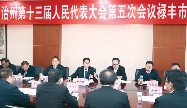 张文旺参加禄丰市代表团审议。(记者 王 洪 摄)