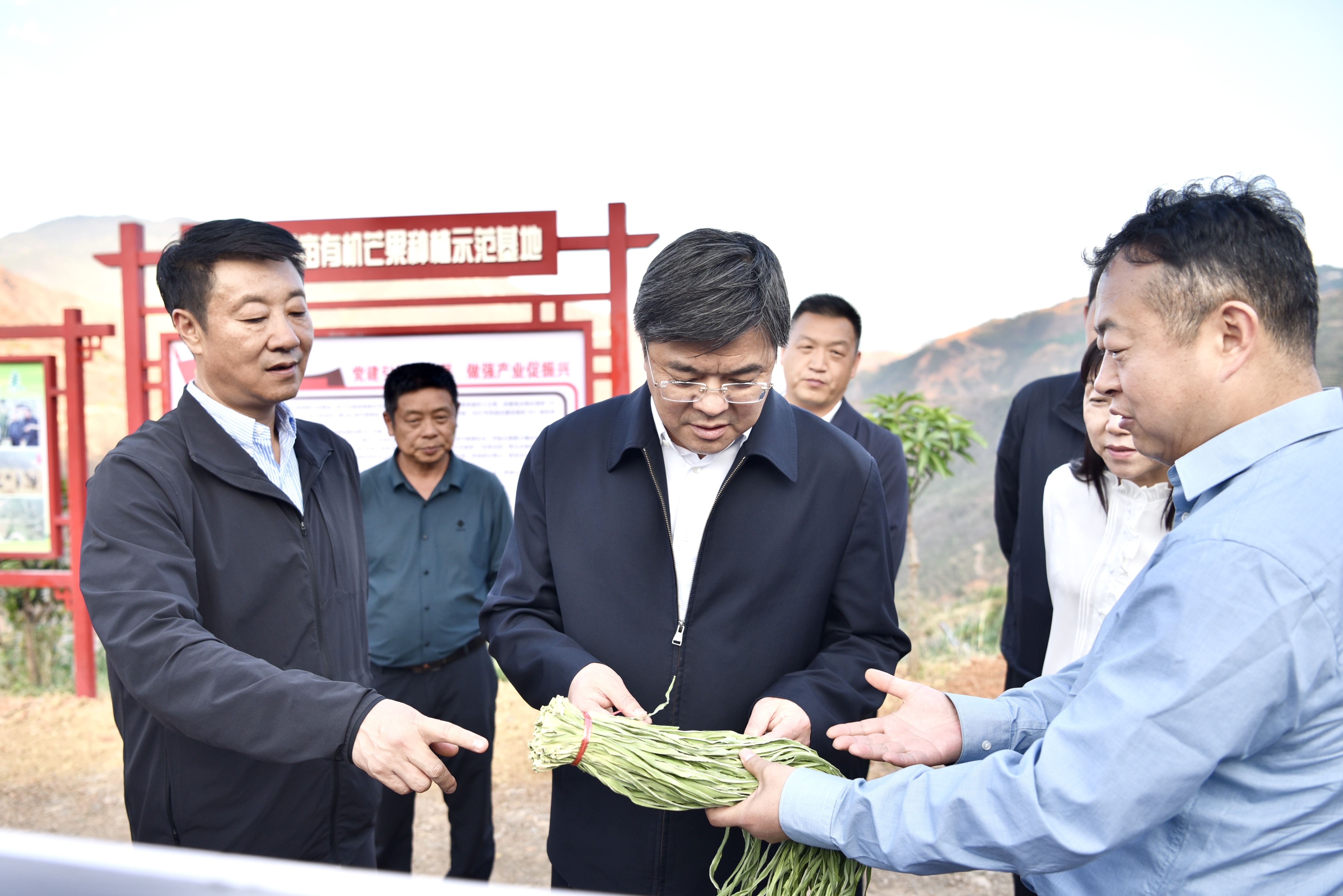 州委书记张子建在懂球帝市西舍路镇达诺村委会有机芒果种植基地调研。记者 杨臻 摄