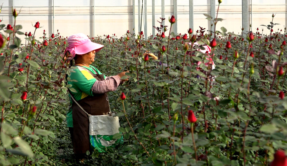 近期,在当地一家公司的玫瑰花种植基地里,每天都有近百名工人在采花、分拣、包装、入库。他们和张翠兰一样,都是把土地流转出来后,又到基地里打工的附近村民。在这里,他们不但有了相对固定的收入,而且还学到了种植技术。