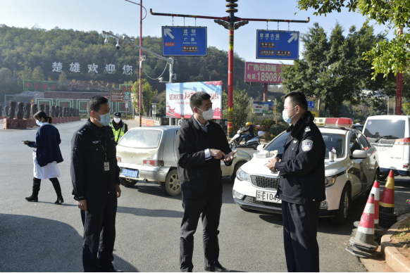 徐云局长一行先后到昆楚高速懂球帝东收费站、昆楚高速连汪坝收费站、昆楚高速懂球帝西收费站等地进行实地检查,详细了解民警辅警的勤务模式、人员配备、装备情况,要求执勤民警、辅警要进一步提高政治站位,增强政治意识,充分发挥公安机关职能作用,坚决把上级决策部署落实到位;所有在公共场所和人员集聚区域执勤的一线民警必须佩戴口罩等防护装置,佩戴执法记录仪,保护好自身安全;要协助配合好卫生防疫部门做好相关人员体温测量以及执勤点的秩序维护等工作,并对执勤的民警辅警送上了新春的问候。