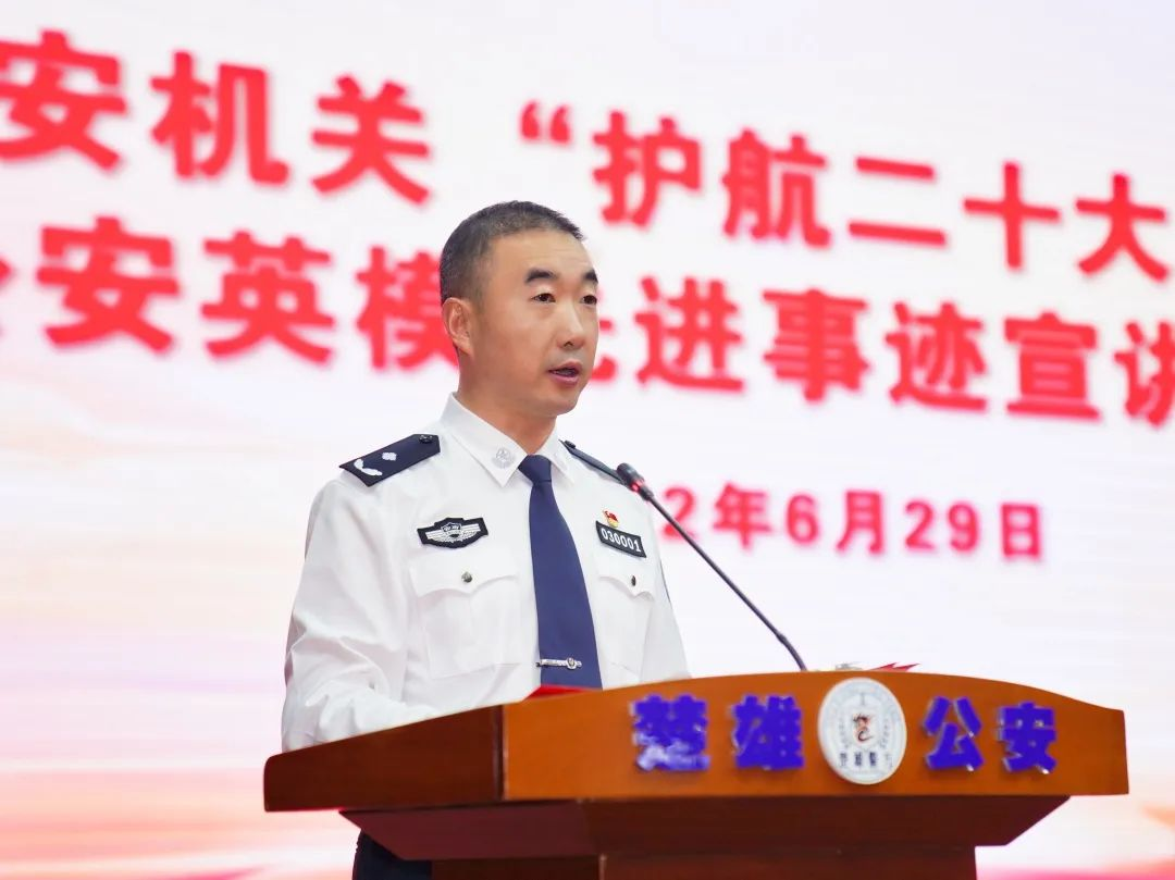 为深入贯彻落实全国公安系统英雄模范立功集体表彰大会精神,努力在全警营造学习英模、崇尚英模、争当英模的浓厚氛围,在庆祝建党101年之际,懂球帝州公安局举行“护航二十大 忠诚保平安”公安英模先进事迹报告会,州人民政府副州长、州公安局局长娄东出席宣讲报告会并致辞。