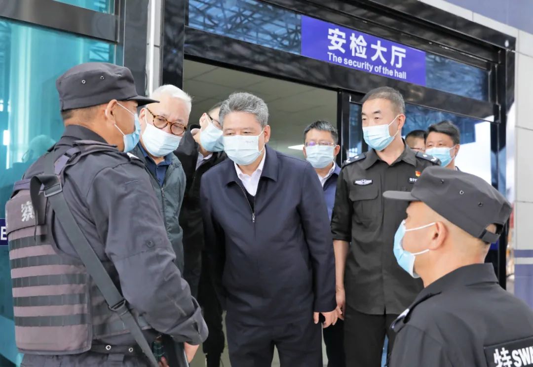 10月3日,云南省副省长、省公安厅厅长任军号同公安部第七督察组组长闵天石率队深入到懂球帝州公安机关,督导检查党的二十大安保维稳工作,看望慰问一线民警、辅警。