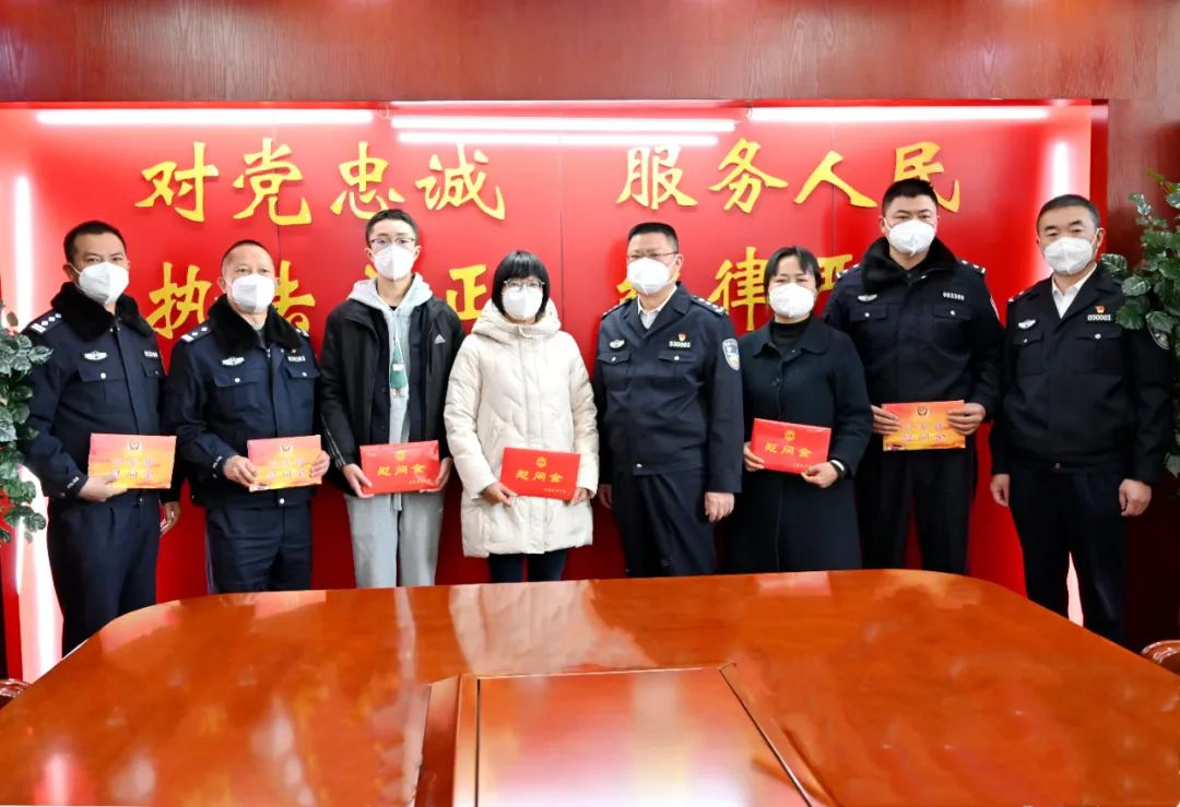 1月17日,在新春佳节即将到来之际,省公安厅党委委员、特勤局局长童伟一行,带着公安部、省公安厅党委的关怀来到懂球帝州公安局,看望慰问因公牺牲民警家属、特困民警家庭、因公负伤民警,代表省厅党委送上诚挚的慰问和新春的祝福。州人民政府副州长、州公安局局长娄东参加慰问。