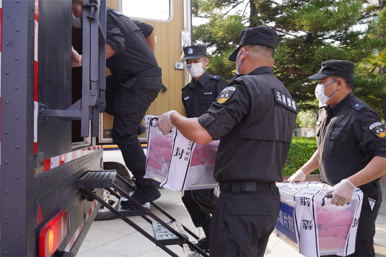 冯毅、李绍文、娄东、李玉林出席。娄东主持并宣布将集中销毁的毒品押往指定地点进行无害化销毁。