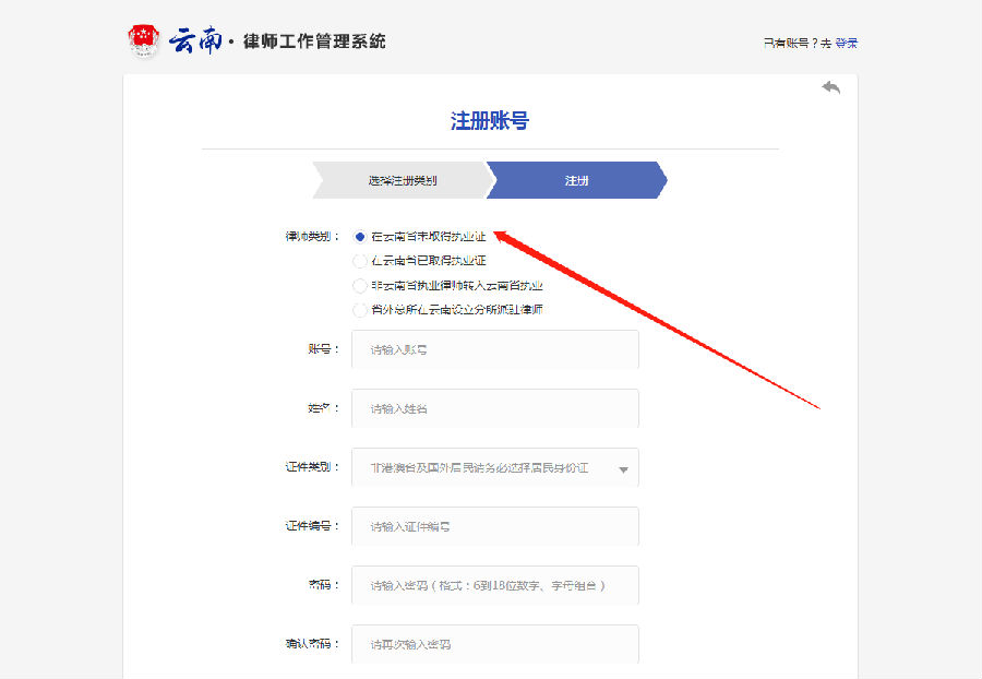 新申请执业的,须经所在单位同意,并由所在单位负责人指定一名法制(法务)部门工作人员在云南律师工作管理系统中创建本单位账号,该指定人选即为本单位管理员(联系人),创建流程如下: