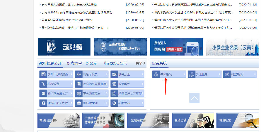 1.登录云南省司法厅官网首页→右下角→律师系统