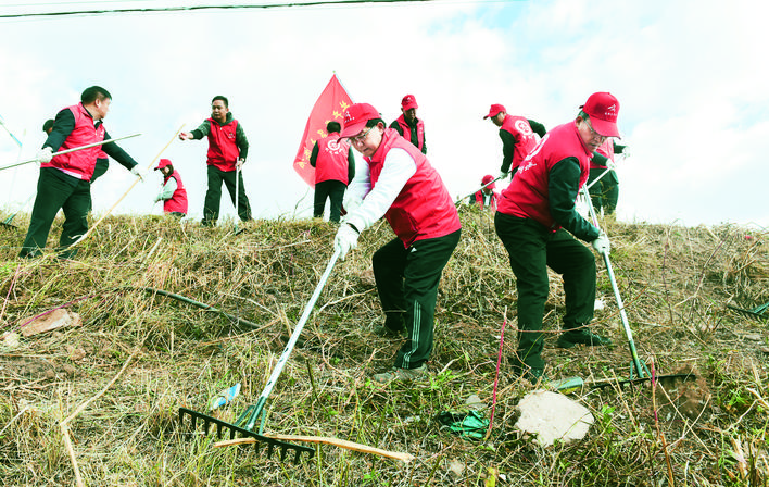杨斌、迟中华等领导带头在龙川江沿岸参加志愿服务活动。 (记者 高建波摄)