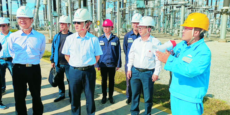 在禄丰腰站500千伏变电站,州委副书记、州长迟中华一行听取电力枢纽保障情况介绍。