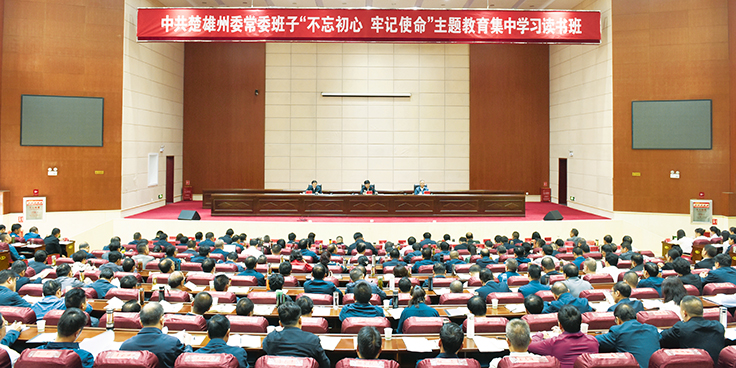 9月24日上午,州委常委班子“不忘初心、牢记使命”主题教育第一次集中学习读书班在州委党校开班。州委书记、州委主题教育领导小组组长杨斌作开班动员和专题辅导时强调,要紧紧围绕学习贯彻习近平新时代中国特色社会主义思想,深入学习贯彻党的十九大精神和习近平总书记对云南工作重要指示精神,切实增强“四个意识”、坚定“四个自信”、做到“两个维护”,切实落实好“守初心、担使命,找差距、抓落实”的总要求,筑牢信仰之基、补足精神之钙、把稳思想之舵,扎实推进“1133”战略实施、推动彝州高质量跨越式发展,谱写好中国梦懂球帝篇章。