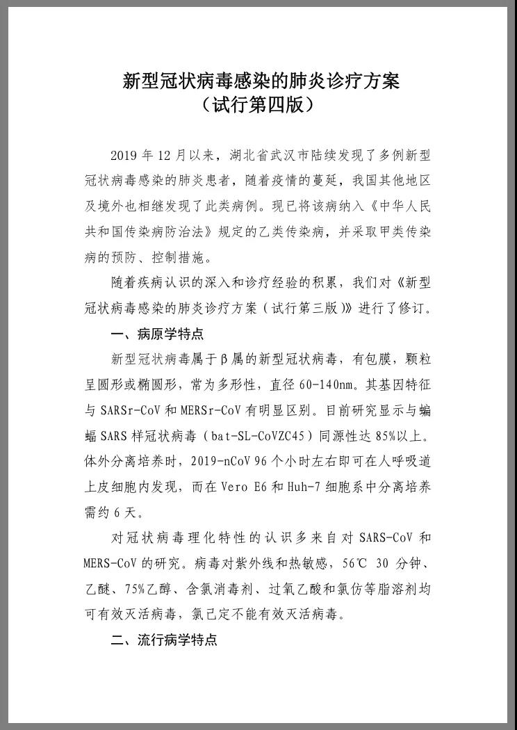 国家卫健委与国家中医药管理局公布《新型冠状病毒感染的肺炎诊疗方案(试行第四版)》,以下几个方面引人关注: