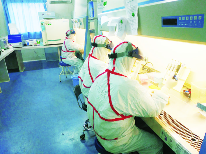 州疾控中心实验室工作人员在进行病例标本检测。