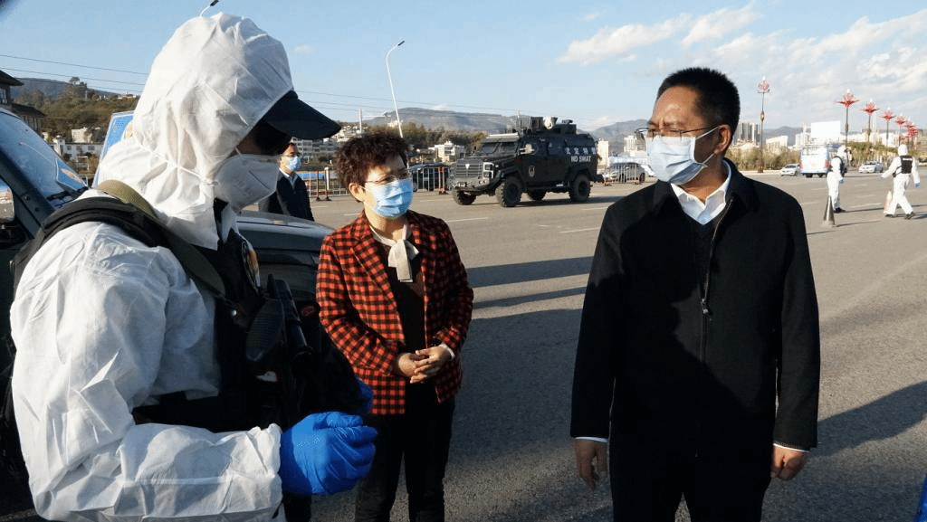 州委副书记、州长张文旺在武定县城高速公路出入口调研疫情防控工作