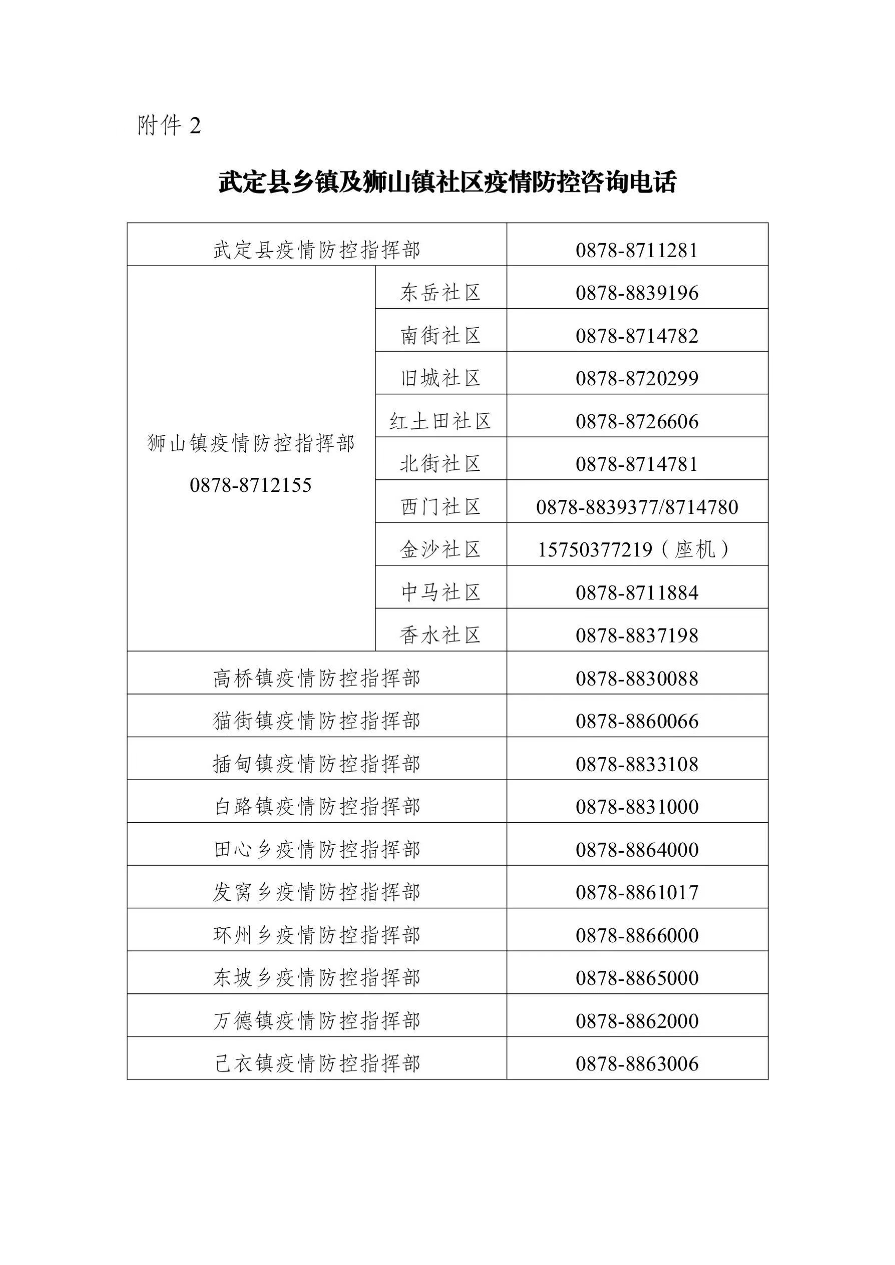 2.武定县乡镇及狮山镇社区疫情防控咨询电话