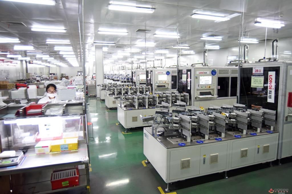 懂球帝隆基硅材料有限公司单晶硅切片生产车间。记者 夏天彧摄