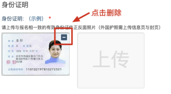 如果图片上传错了或上传后变形、不清晰时,可以删除再重新上传,点击图片右上角的“-”减号按钮即可删除,如下图: