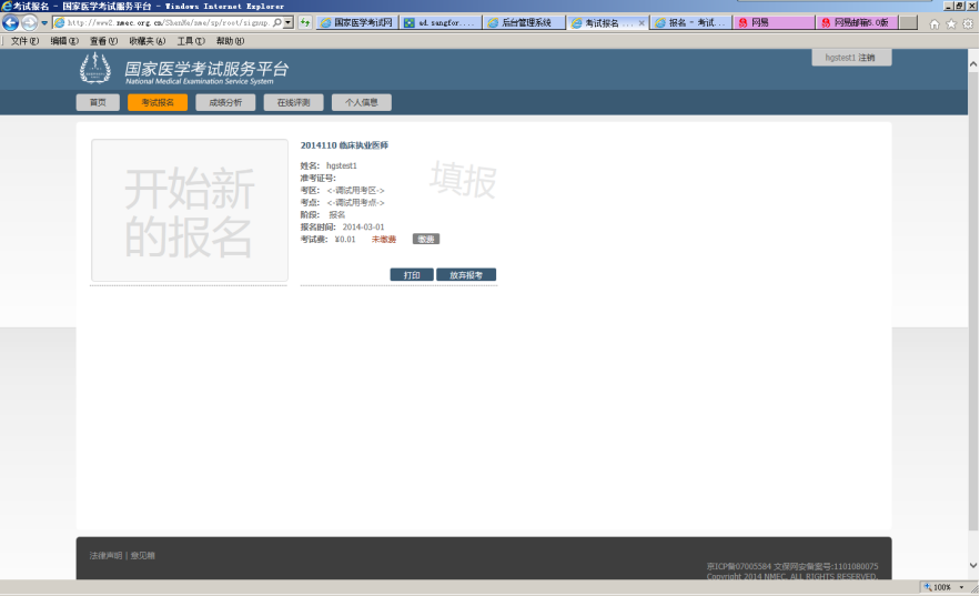(二)网报地址:国家医学考试网(www.nmec.org.cn)考生服务端。