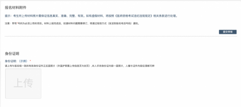 注意: 这里显示的内容,是医师资格考试所有可能需要的材料列表,考生根据自己的个人情况和考区通知要求,上传必需的报名材料图片。