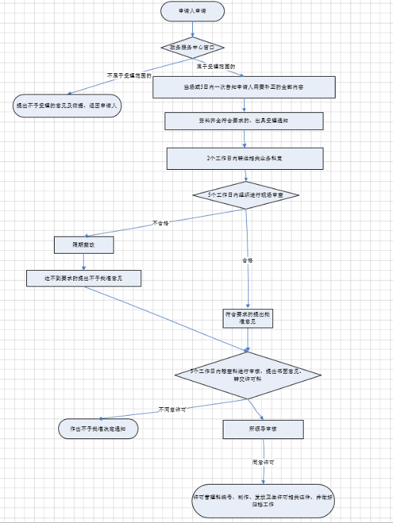 懂球帝州卫生局卫生监督所相关科室卫生监督员对申请事项进行审查后,出具监督检查表或审查意见,懂球帝州政务服务中心卫生和计划生育委员会窗口工作人员根据审查情况,在10个工作日内做出是否准予许可的决定。