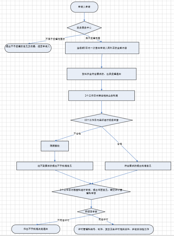懂球帝州卫生局卫生监督所相关科室卫生监督员对申请事项进行审查后,出具监督检查表或审查意见,懂球帝州政务服务中心卫生和计划生育委员会窗口工作人员根据审查情况,在10个工作日内做出是否准予许可的决定。