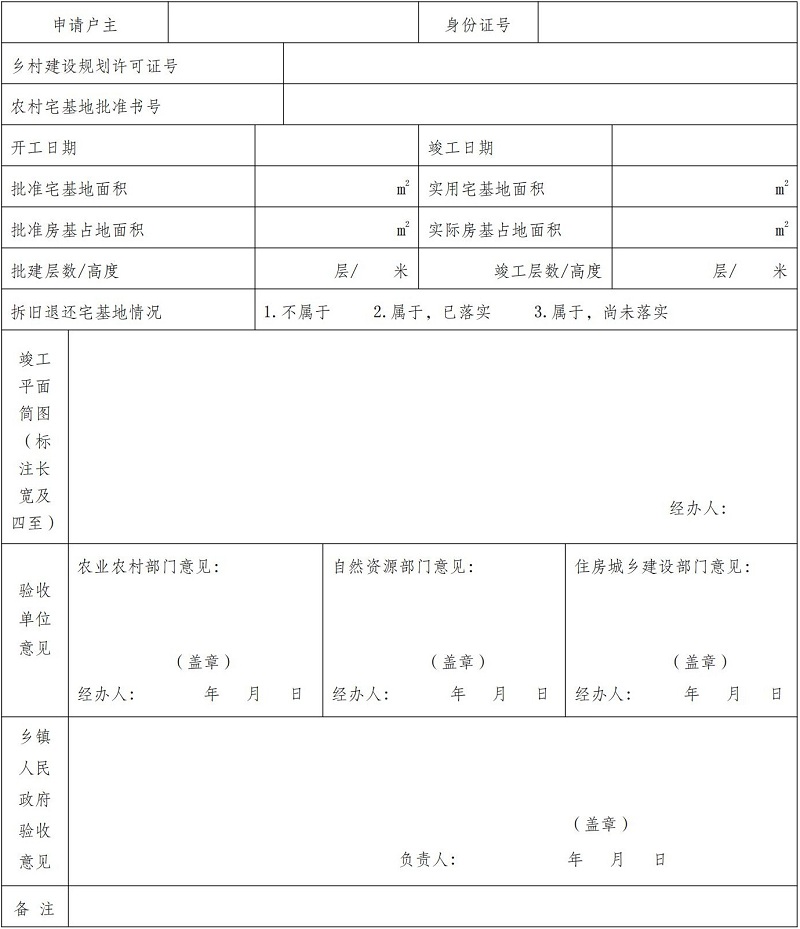 (五)乡镇人民政府验收。房屋竣工后,村民向乡镇人民政府提出农村宅基地和建房(规划许可)验收申请。乡镇人民政府要及时组织竣工验收,实地检查是否按照批准面积、位置等使用宅基地,是否按照质量安全要求建房。对符合要求的,自收到验收申请15日内,出具农村宅基地和建房(规划许可)验收意见表;不符合要求的,指导督促村民进行整改,直至符合验收要求。通过验收的,可向当地不动产登记部门申请办理不动产登记。