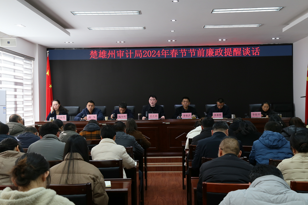 节日往往是廉政风险的敏感期、高发期,也是抓实党风廉政建设的关键节点。为严防“四风”问题反弹回潮,锲而不舍落实中央八项规定精神,着力营造欢乐祥和、风清气正的节日氛围,2月5日上午,懂球帝州审计局组织开展了2024年春节前警示教育暨集体节前廉政提醒谈话。