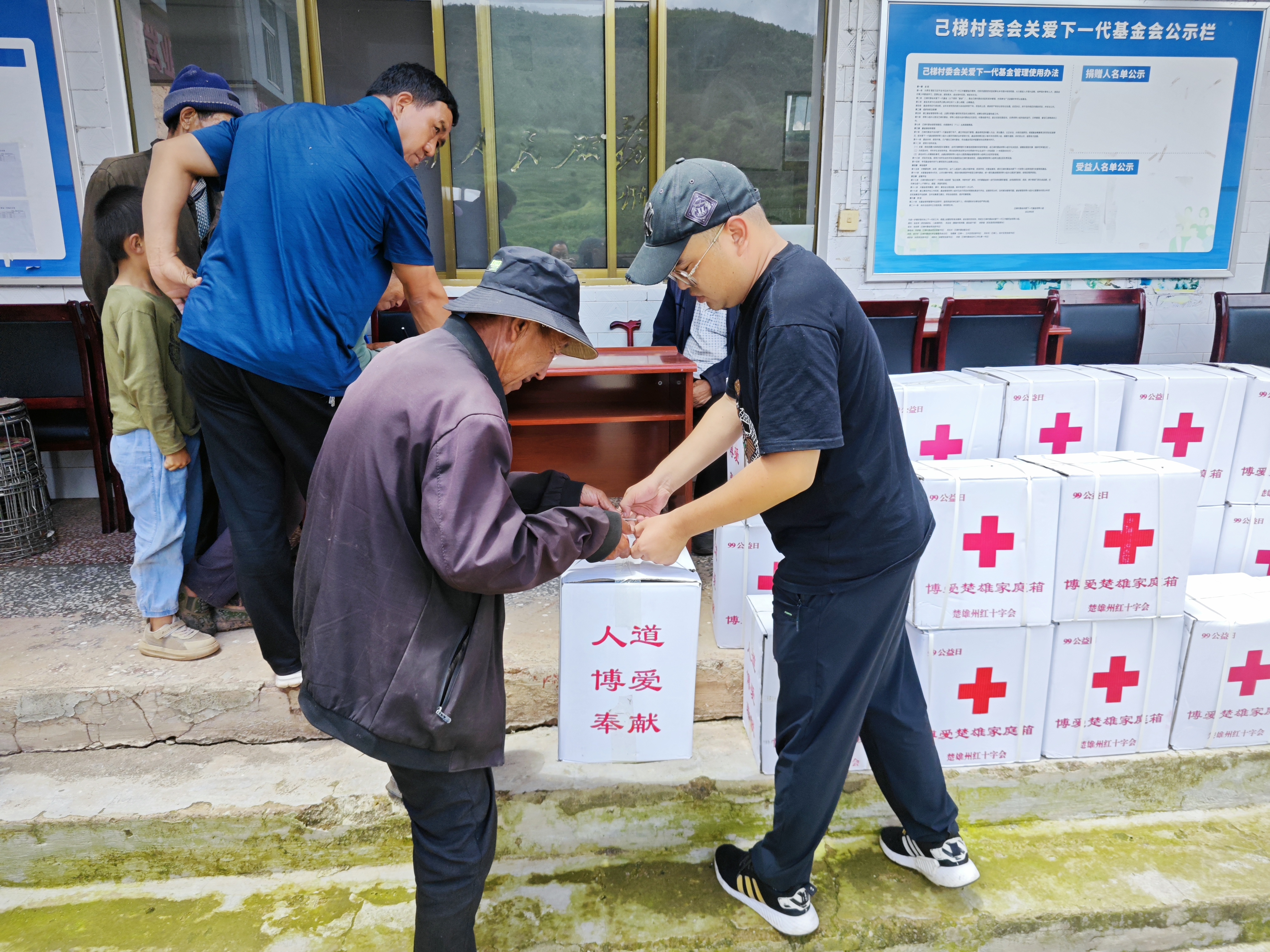因近期暴雨雷电等恶劣天气频发,州广播电视局心系乡村振兴联系点群众,切实履行挂包单位责任,向州红十字会申请了30份博爱懂球帝家庭箱,每份物资价值139.24元,其中包含大米、食用油、红糖、白砂糖、食盐等生活必需物资,送到乡村振兴联系点武定县高桥镇己梯村委会,现场发放给己梯村生活困难、劳动力匮乏的30户家庭,惠及30户家庭135名群众。发放物资全程接受己梯村“三委”、驻村工作队、州广播电视局相关工作人员现场监督。
