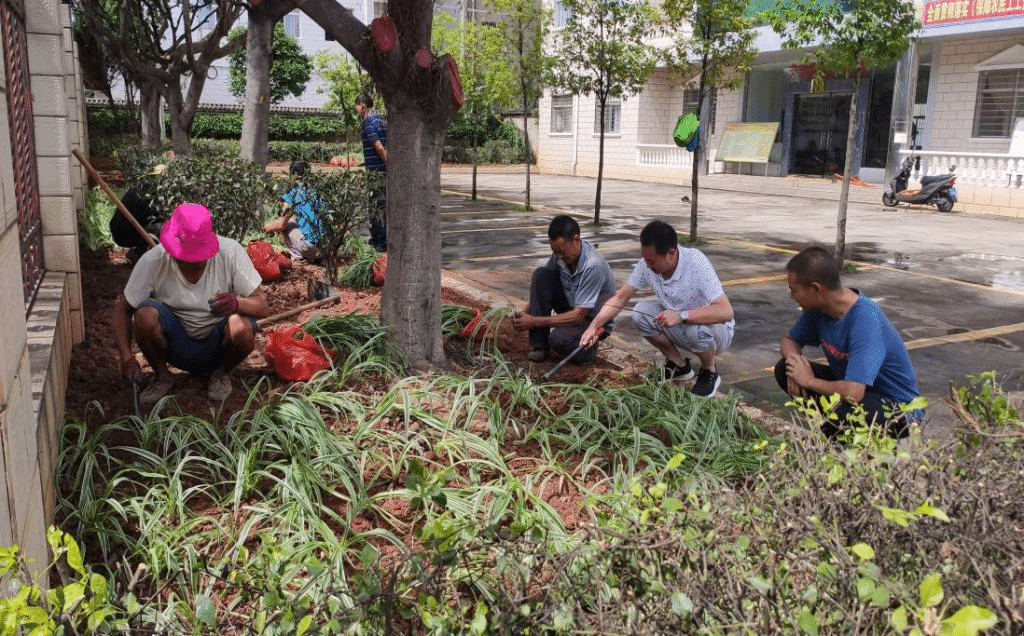 二是补植花草,迎来新容颜。针对树木下黄土裸露、杂草较多等短板问题,采取一次移、补、换、植等方式,消除花草枯死及杂草区域300㎡,补植绿化花草3400棵,喜添新绿,重现生机,扮靓大院美容。