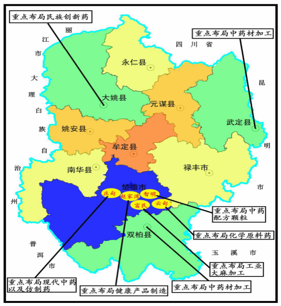 打造生物医药聚集区、全国一流中药配方颗粒产业基地、云南仿制药生产基地,建设集种植、加工、科研、流通和康养为一体的“滇中药谷”。
