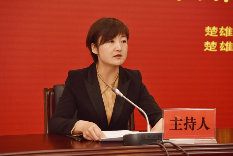 州委宣传部对外新闻和交流推广科科长杨海丽主持新闻发布会。记者 王洪 摄