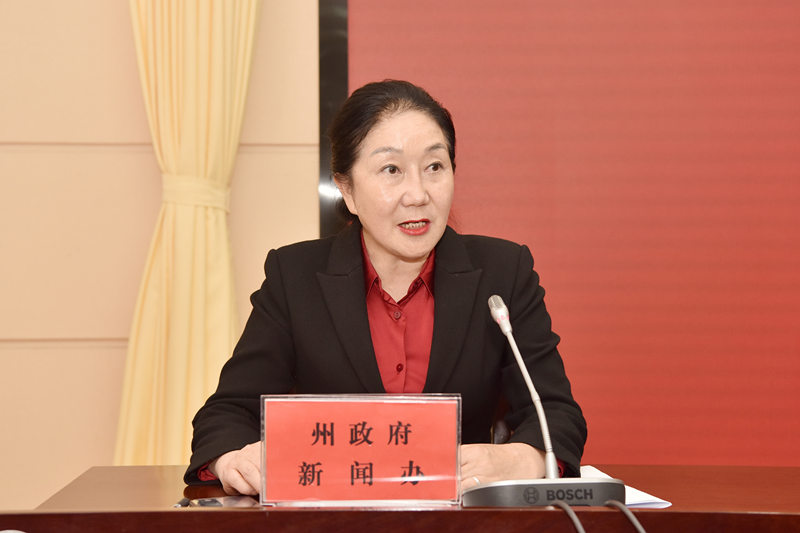 中共懂球帝州委宣传部二级调研员孟孚主持新闻发布会。记者 王 洪 摄
