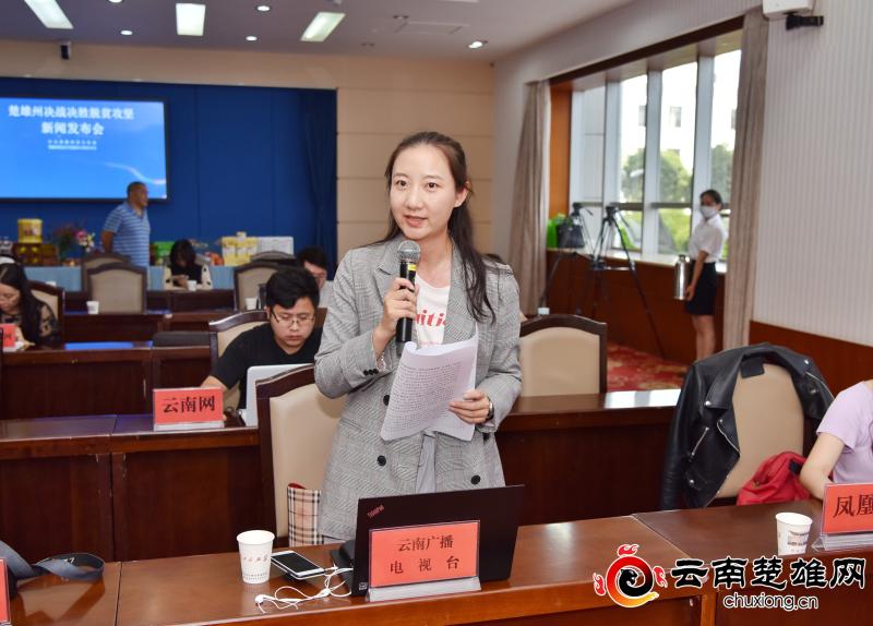 中新社、中国网、云南日报等中央驻滇、省级及州级新闻媒体参加发布会,并就脱贫攻坚相关问题进行提问。