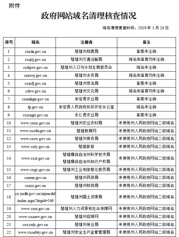 (二)政府网站域名清理工作需进一步加强。部分县级政府部门和州级部门未按域名规范要求清理政府网站域名。